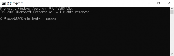 Pandas를 모듈을 설치하기 위해서는 명령 프롬프트에서 아래의 명령을 실행하면 된다.